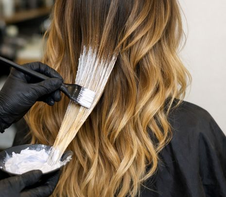 Se trabaja con pincel sobre la superficie del cabello creando un degradé suave y natural, más claro en medios y puntas